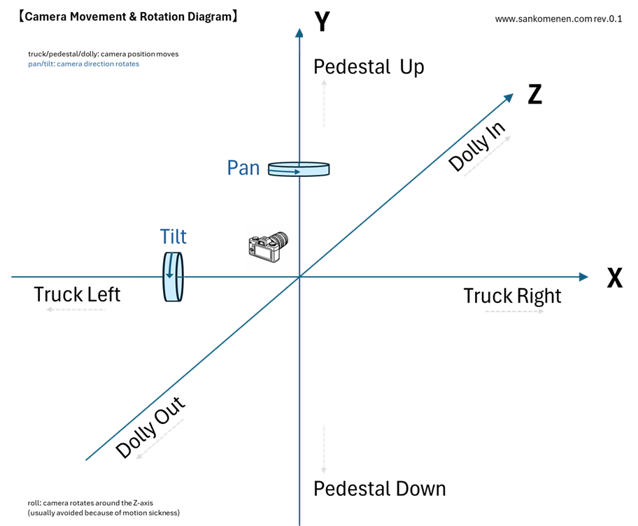 動画生成AI、Sora2にてカメラワークを適切に指示しようとすると、Truck / Pedestal / Dolly / Pan / Tilt といった専門用語が突然立ちはだかります。 これらは決して難しい概念ではなくて […]