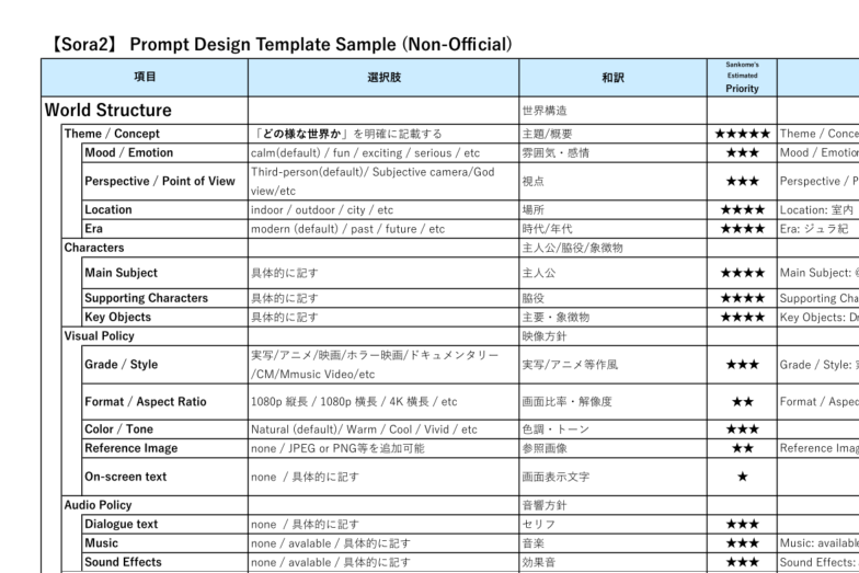 【Sora2】Prompt Template Sample(非公式・優先順位付)新着!!