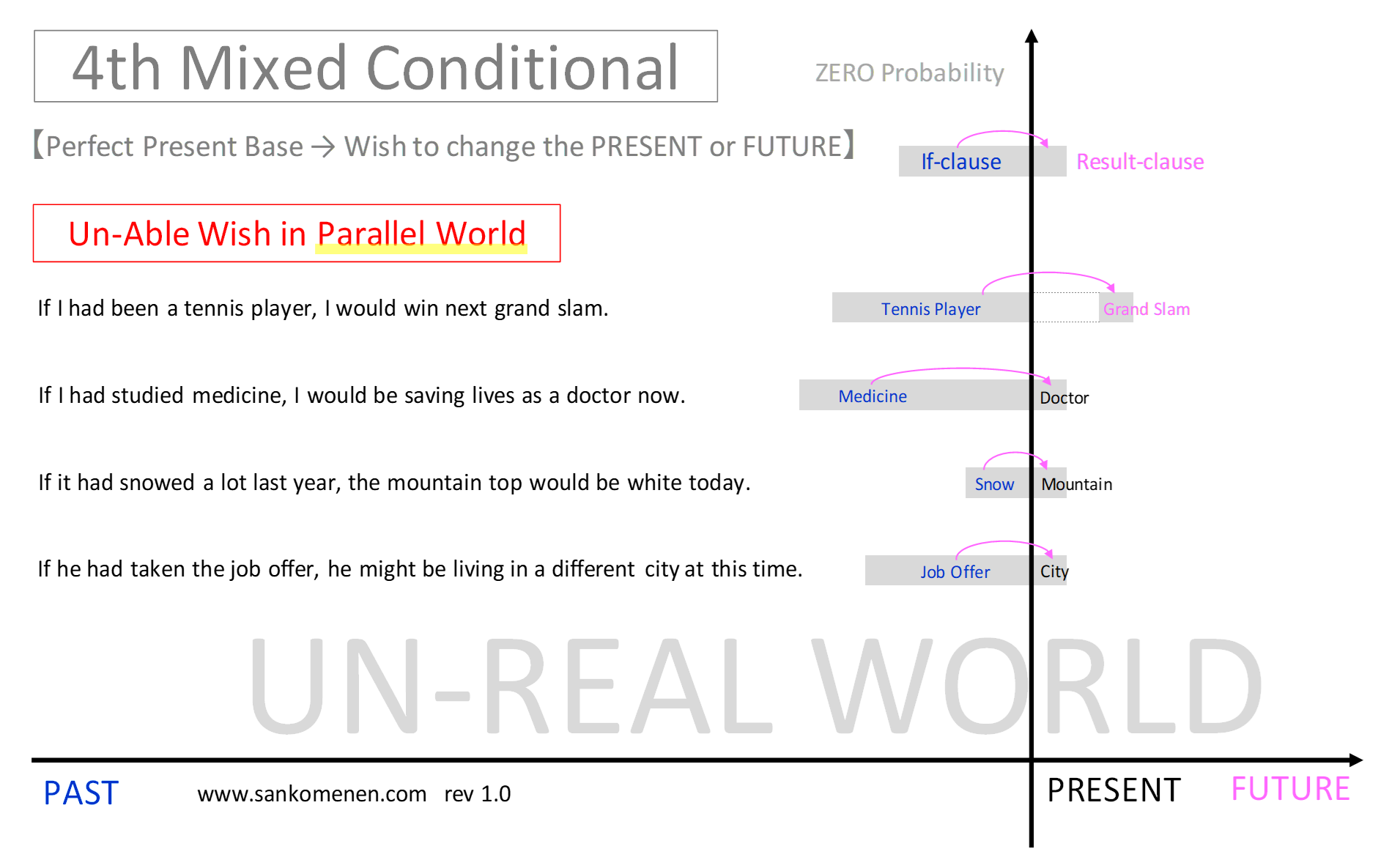 4th Mixed Conditional is Wish to change the Present or Future in Un-Real World